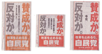 9月9日付朝刊第27面…「年金も介護も医療も持続可能にする郵政民営化に/賛成か。反対か。」