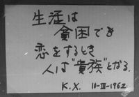 〈3・21〉「生活は貧困でも 恋をするとき 人は"貴族"となる」と紙に書いて壁に貼る