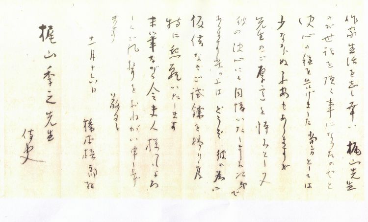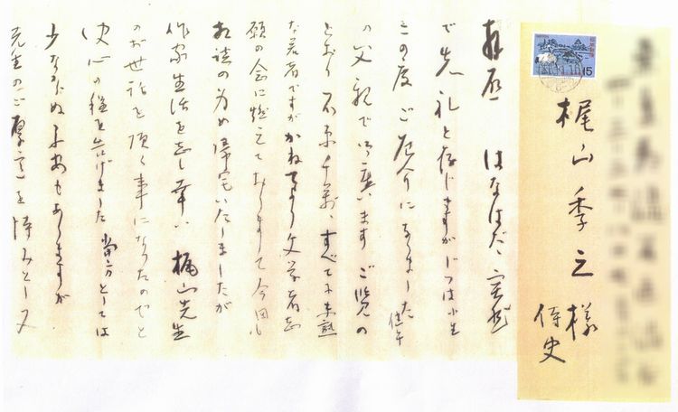 父梧郎(八五郎)が梶山先生にあてた手紙