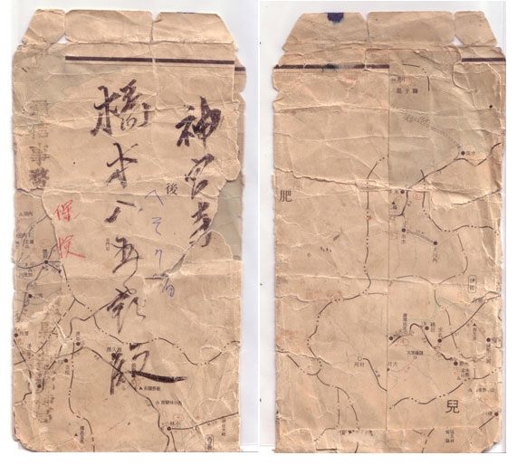 なお、封筒の裏には何の記述もなく、九州地方の一部がそのままの地図である。