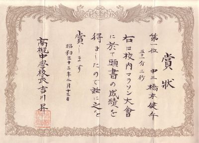 *高槻学園新聞(昭和33年2月19日付第64号見出し「岡崎〈高校〉橋本〈中学〉君優勝 校内マラソン大会」参照)