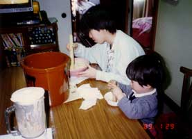89(平成1)年1月29日(日) みそづくり 長男も手を出す、長女も手伝う。